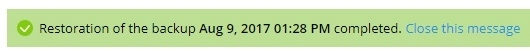 You will be returned to the Websites & Domains > Backup Manager screen where you can see the backup being restored. The restoration process can take some time to finish, depending on the size of the content being restored. A notification will come up on this screen once the backup has been restored.