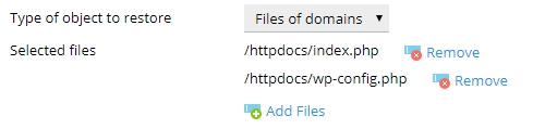 If you selected “Files of domains” during the previous step, click Add files, select the file or files you want to restore, and then click OK.