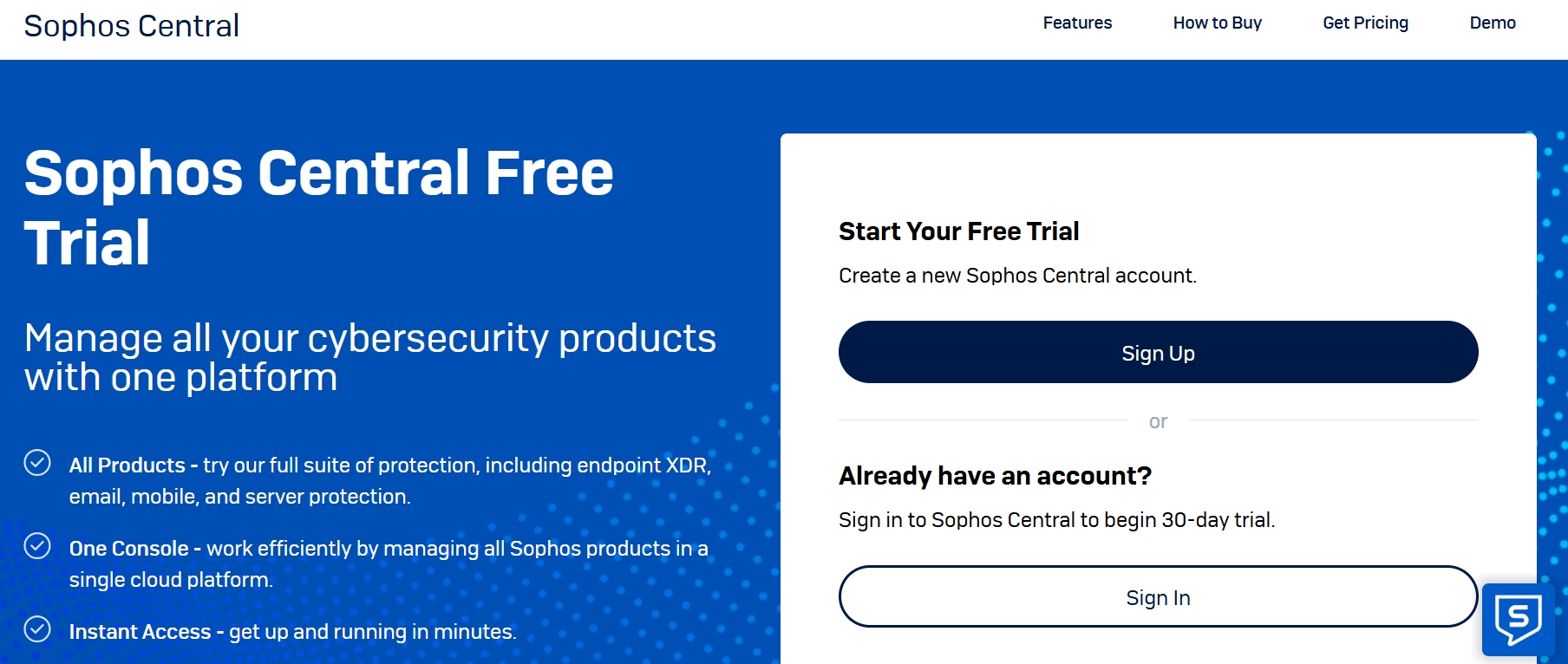 Go to https://www.sophos.com/en-us/products/sophos-central/free-trial and click Sign Up.
