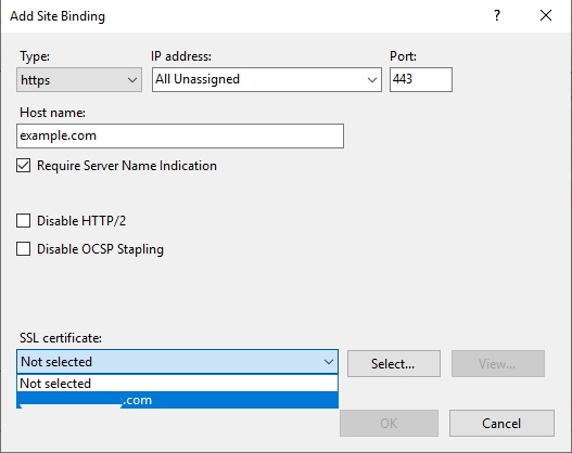 livefolder and automatically renews it before the certificate expiry date. Certbot generates and saves SSL certificates as.pemfiles. However, the IIS certificate store requires the.pfxformat. Convert your Certbot certificates using OpenSSL and bind them to your domain, as explained in the following steps.Download the latest OpenSSL installation file from an official download link.