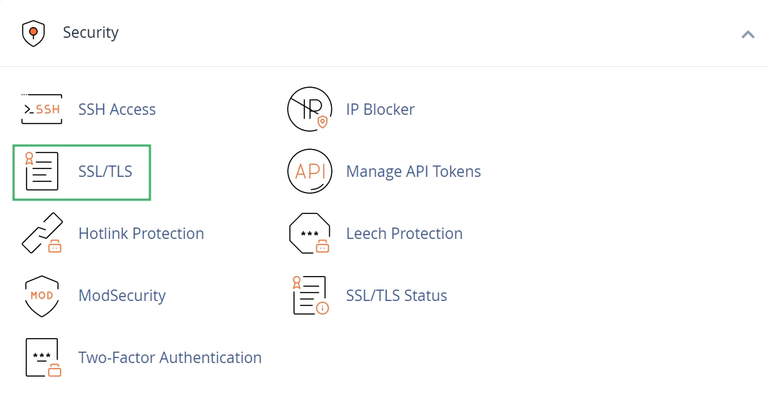 Locate and click "SSL/TLS" in the Security section: