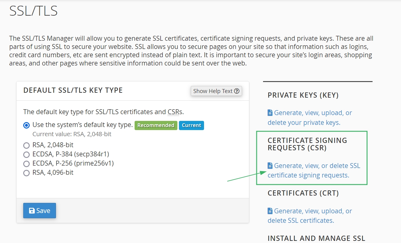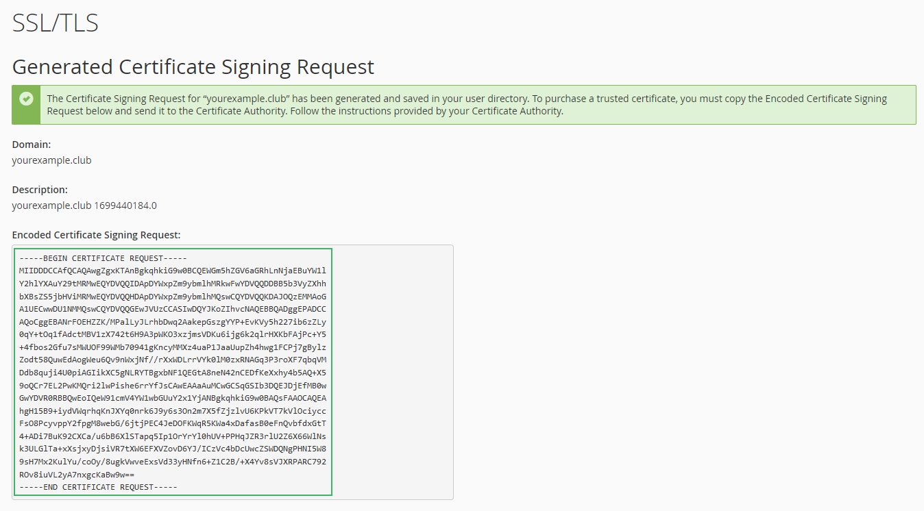 Generating a CSR using cPanel