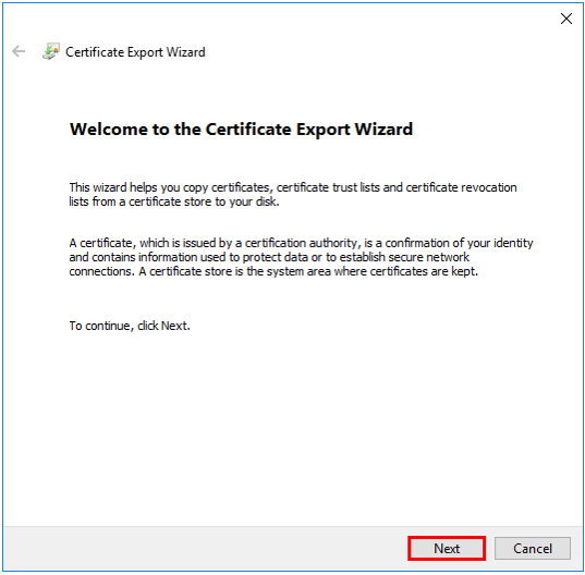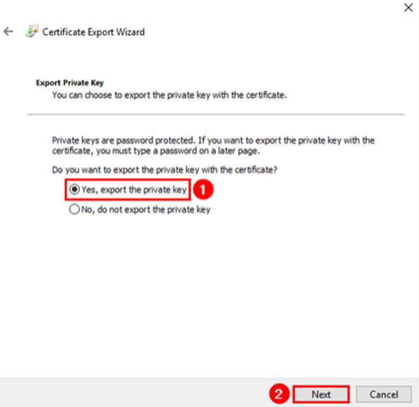 This time, the Yes, export the private key option should be selectable. Click Next.
