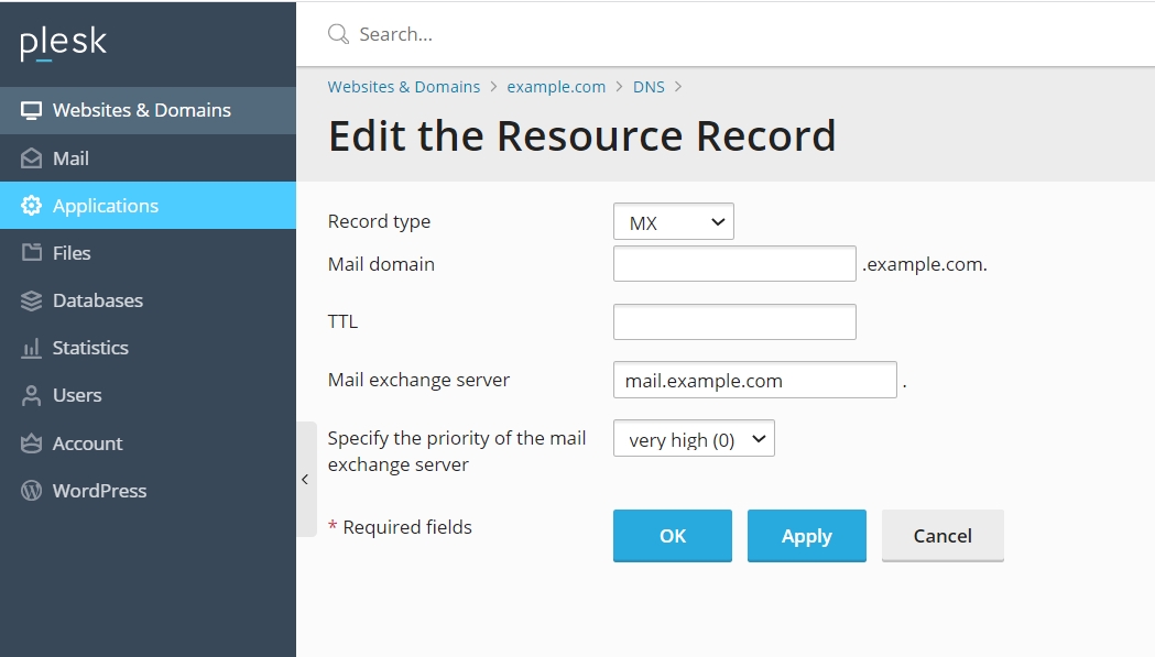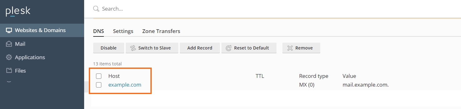 HostGator Plesk 18 DNS Settings Click on the existing MX Record under Host to edit.