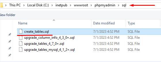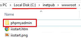 1. In the folder C:\inetpub\wwwroot, create a folder called phpmyadmin