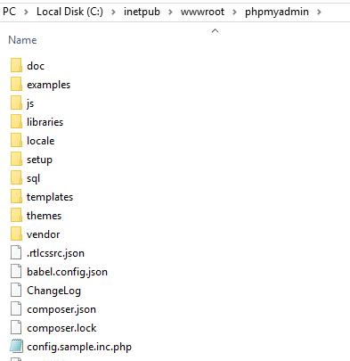 3. Unzip the downloaded archive into the previously created folder C:\inetpub\wwwroot\phpmyadmin