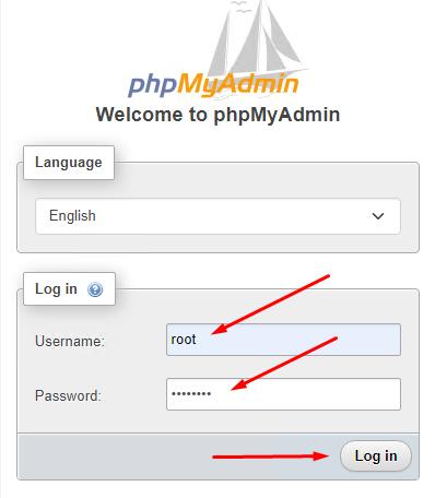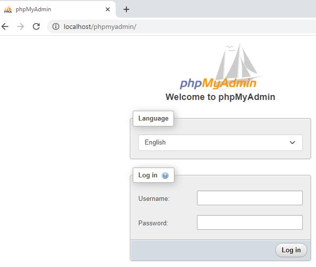 4. Installation is complete. Open the page http://localhost/phpmyadmin/, you should see the standard phpmyadmin panel login form
