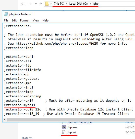 Solution: enable the required extension in the php.ini file and restart the IIS web server. The php.ini file is located in the folder where PHP was previously installed (in our example it is C:\php\). To enable the extension you need, you need to find it by name in the php.ini file and uncomment (remove the ;; character from the beginning of the line) the line with the extension name.