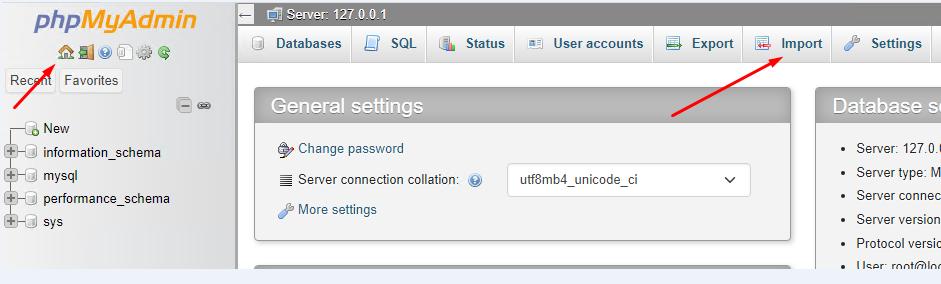 Click the Import button (at the very bottom of the form) and wait for the database import to complete.