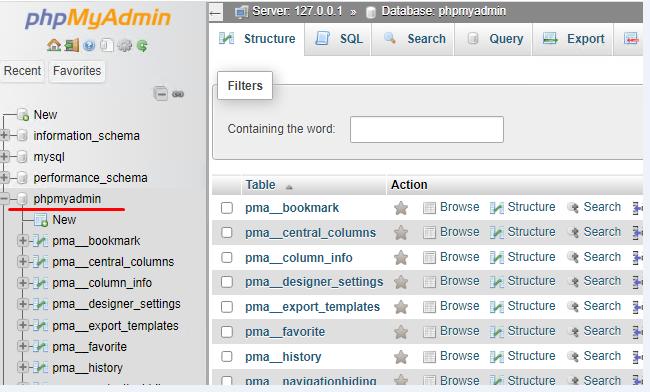 The phpmyadmin database should now appear in the list