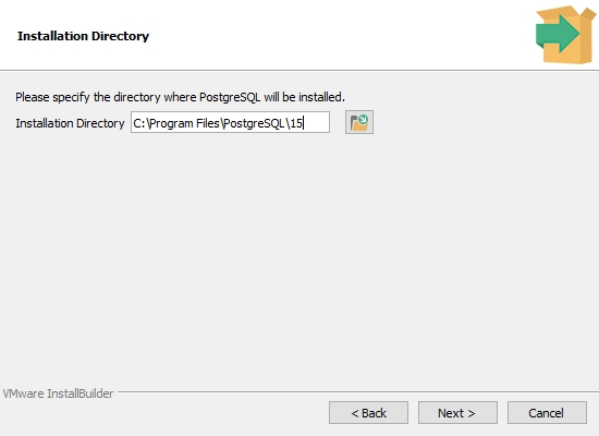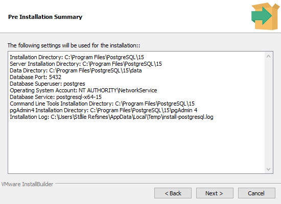 You can specify the location of PostgreSQL, I will go with the default choice:
