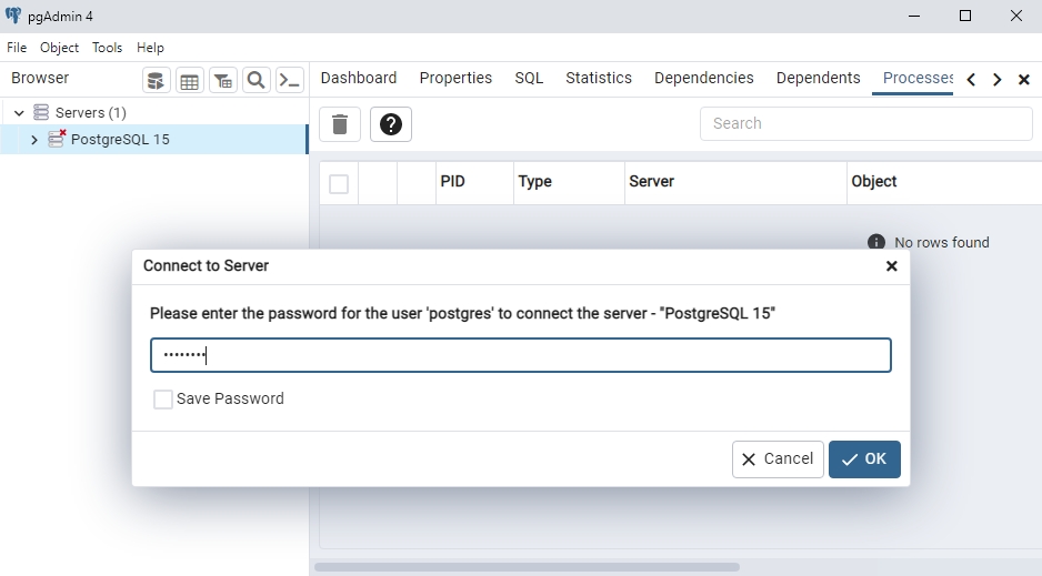 Now you need to enter the password that you created when you installed PostgreSQL, my password is 12345678:
