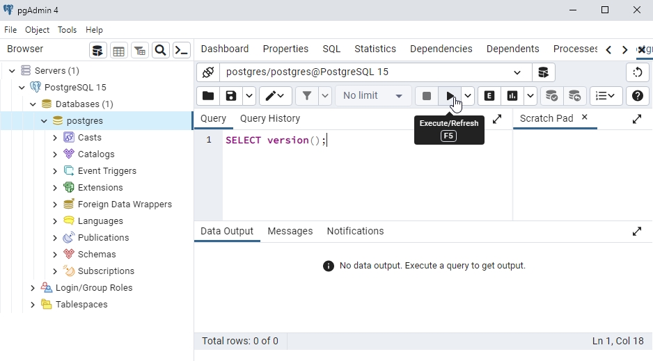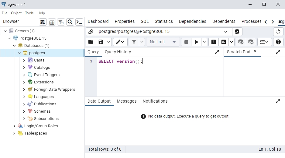 SELECT version();To insert SQL statements in the Query Tool, just write in the input box like this: