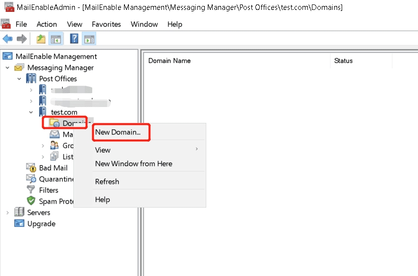 Step 3: Add a New Domain to the PostOffice