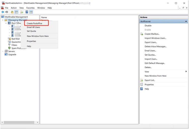 Select Create PostOffice from the right-click menu.
