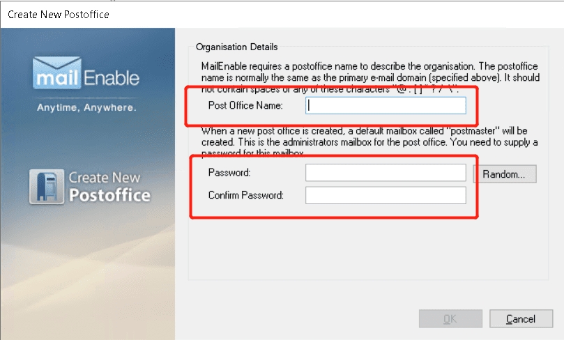 A dialog box will appear asking you to enter a PostOffice Name.