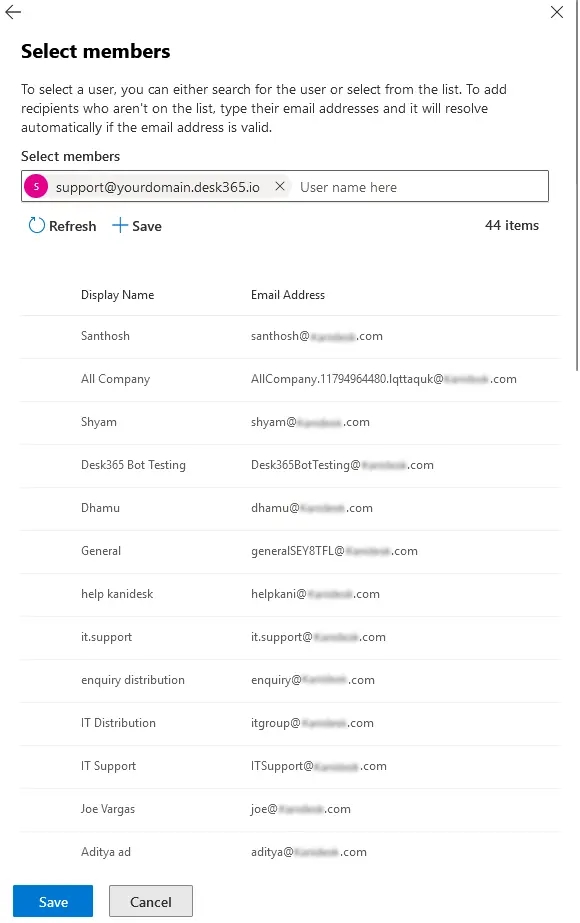 6. From the next page, select your company’s support email address (support@yourdomain.com) and click save.