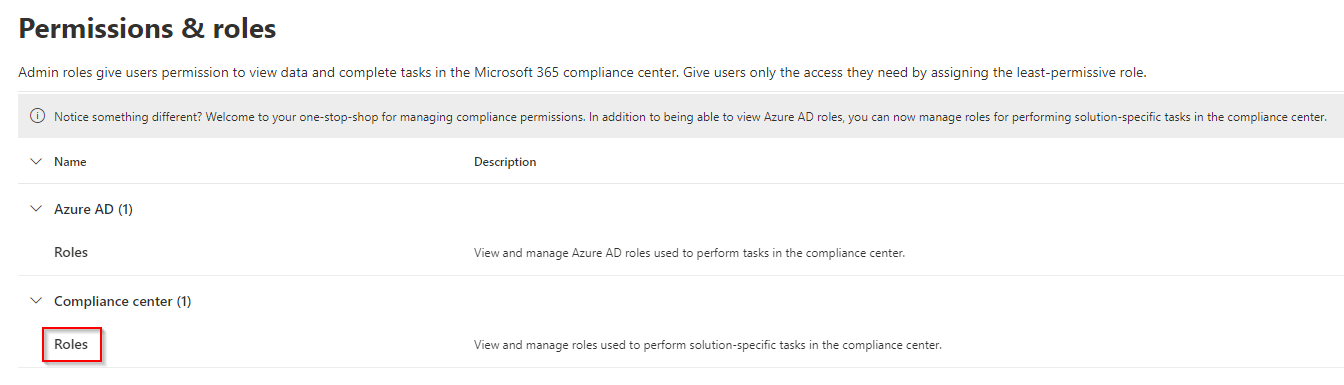 A few key compliance center admin roles