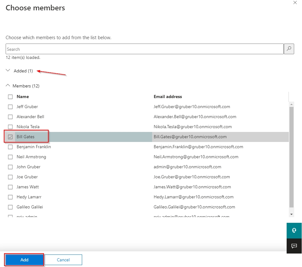 6. Click the checkmark next to the users you want to add to the role. Verify the number of users you select appears next to Added. Click Add.