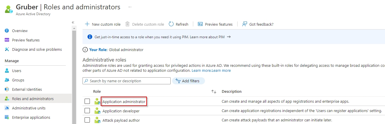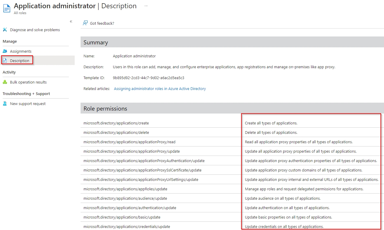 Just like the Microsoft 365 admin roles, you can view the description and see the permissions assigned to each role.