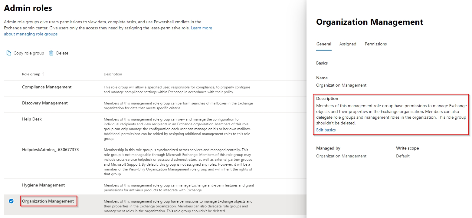 Organization Management members can manage virtually everything in Exchange Online. It's like the global admin but for Exchange Online.