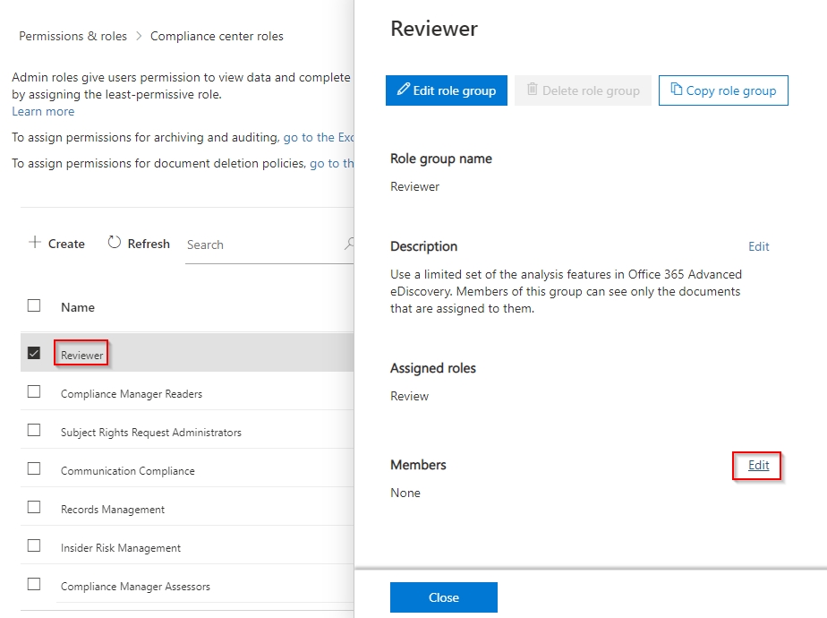 Discovery management members can perform searches of mailboxes and manage legal holds / preserve all the mailbox content.