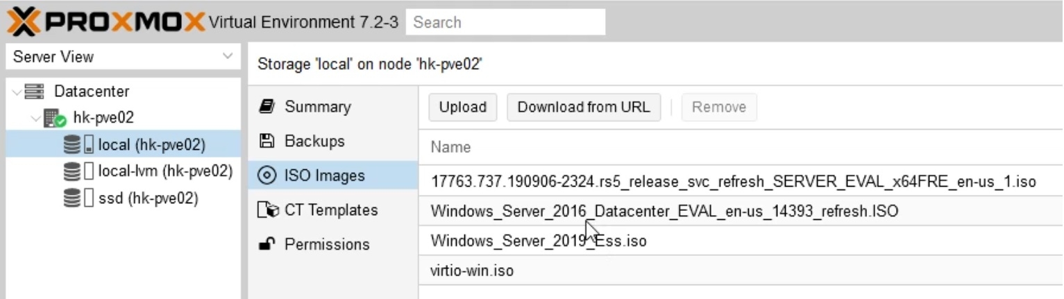 First, download the windows server image from manufacturer’s website and upload it to your local Proxmox drive.