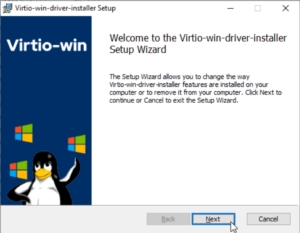 To do this, enter the CD Drive (D:) to which the virtio-win.iso CD is connected. Start the virtio-win-guest-tools program from the root directory. We go through the installer without any changes, agreeing to all the default options.