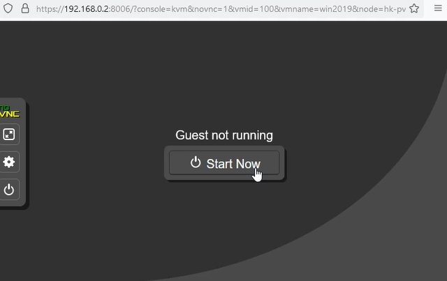 Then, go to the Summary section and launch our server’s console: Console > NoVNC. We start the machine by clicking Start Now