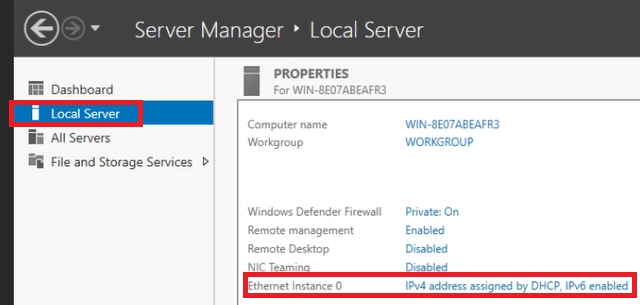 After logging in, we allow our computer to be searched on the local network and set the IP address. From the server manager, click on Ethernet Instance 0. This will open a connection list that contains Ether Instance 0. Open it.