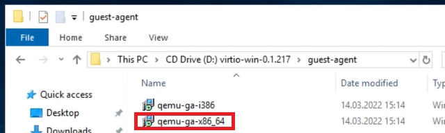 In the “guest-agent” directory, run the “qemu-ga-x86_64” application.