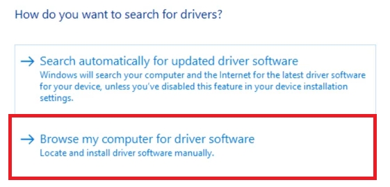 Two unknown devices can be seen here. Click on each of them and install the drivers: select “Update Driver…” > “Browse my computer for driver software”.
