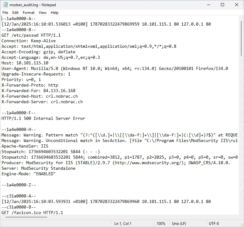 We should now see an entry for this in the “modsec_audit.log” file. Modsecurity has now been successfully tested.