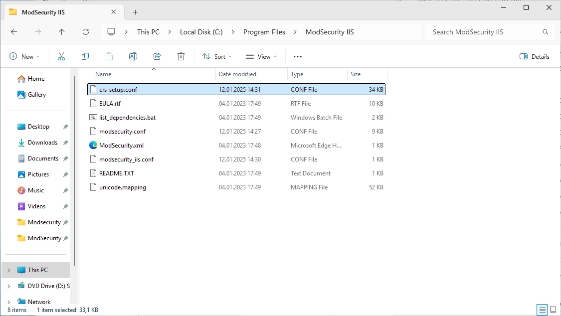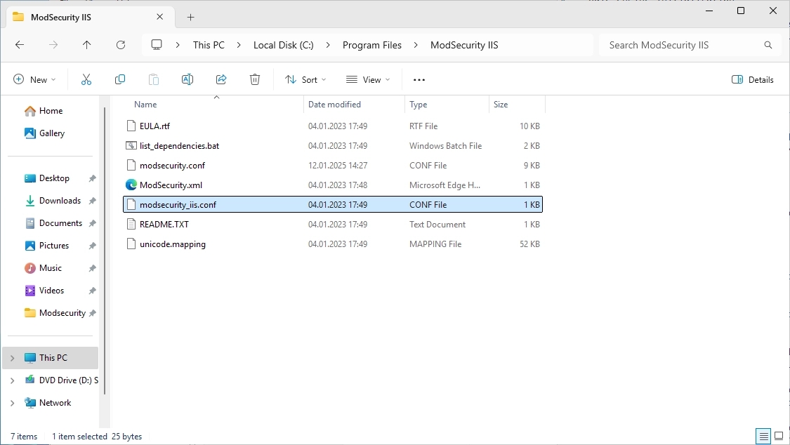 Now find the “modsecurity_iis.conf” file.