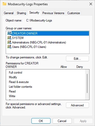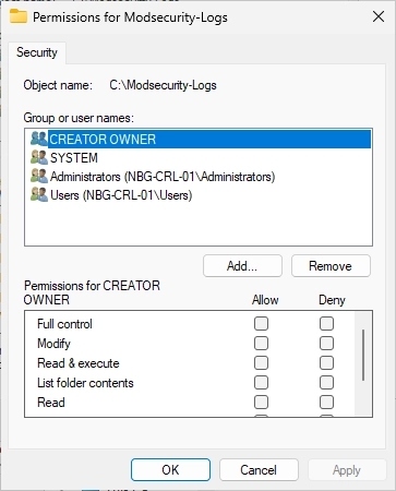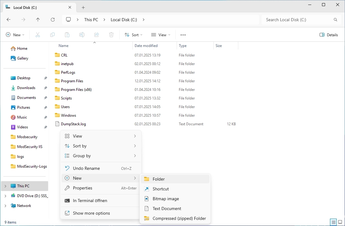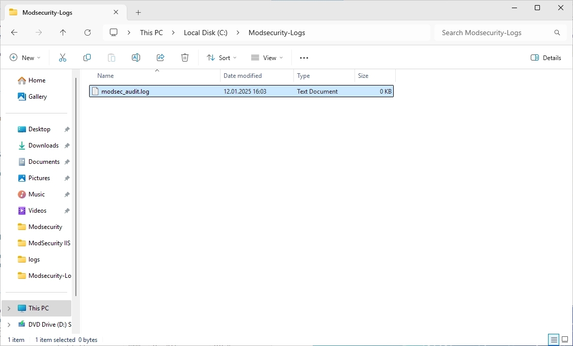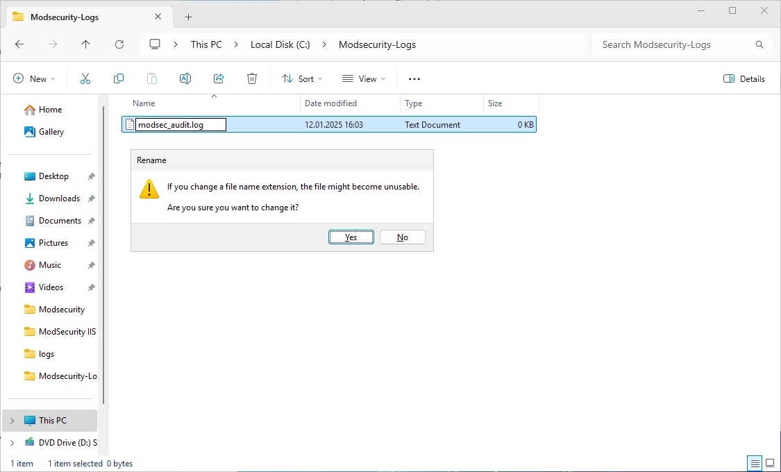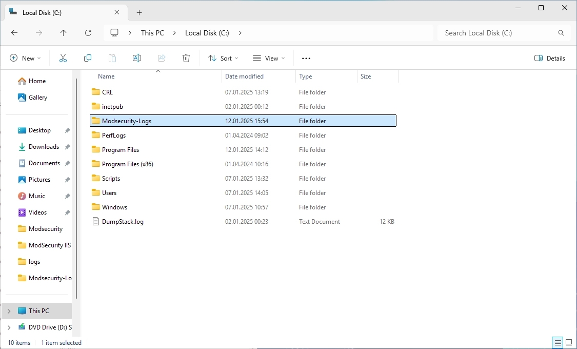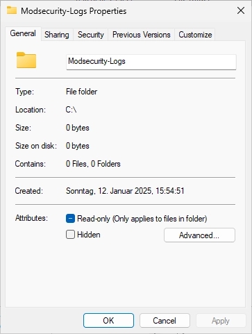 In the C:\ directory, create a new folder with the name “Modsecurity-Logs”.