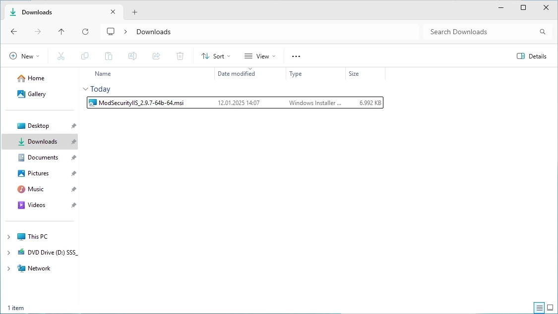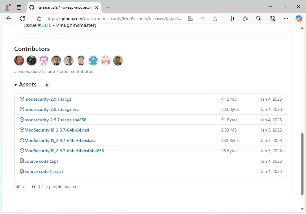 Download Modsecurity from the official Github page. The latest version for Windows is v2.9.7 at the moment. Just download the MSI-File.