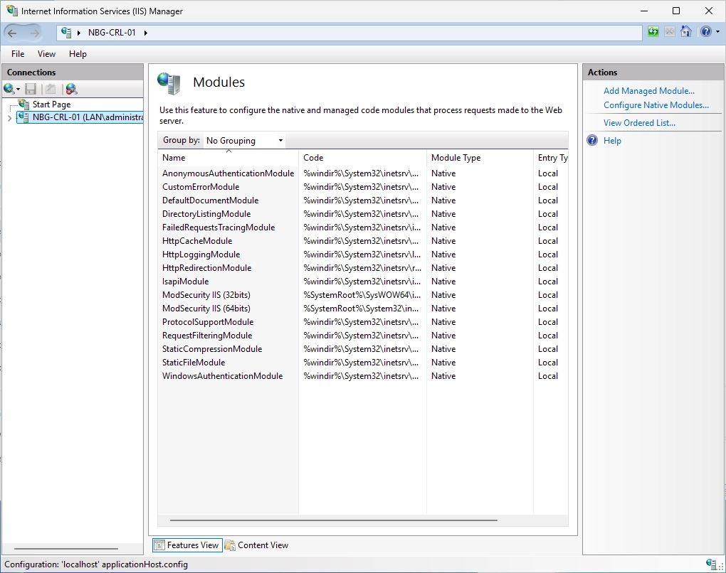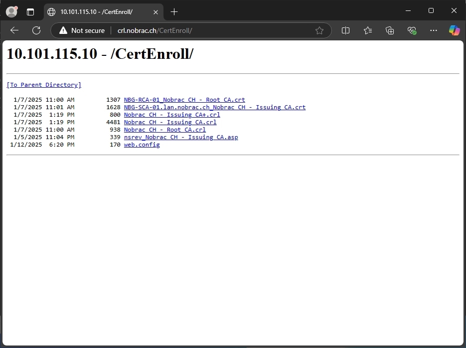 If you operate a PKI, it is very likely that access to the /CertEnroll directory will no longer work. There are entries in the log that could look something like the ones below.