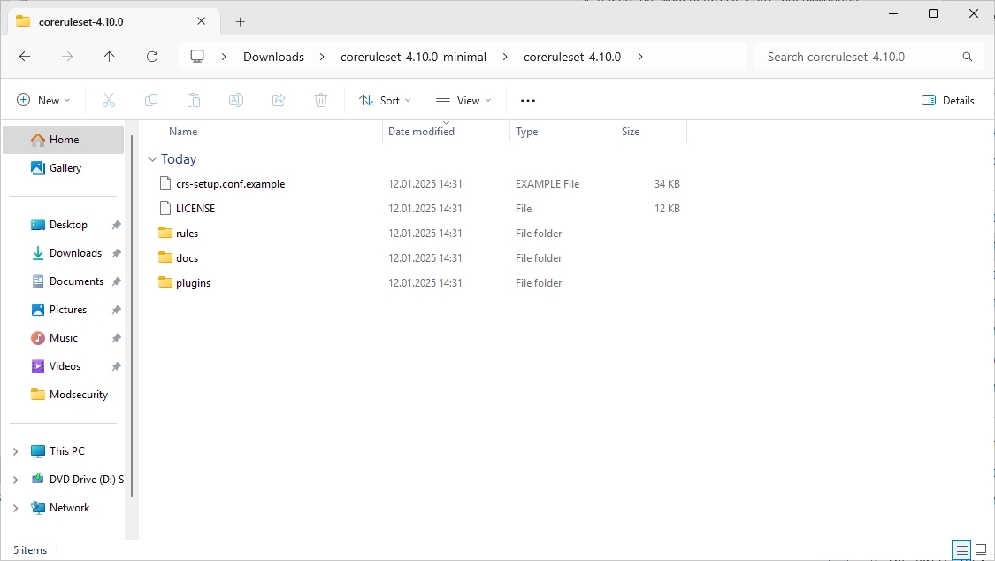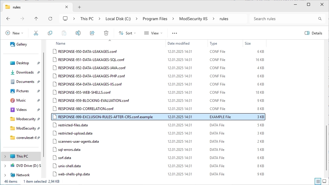 Copy the “rules” folder to the “ModSecurity IIS” folder. It should look like this.