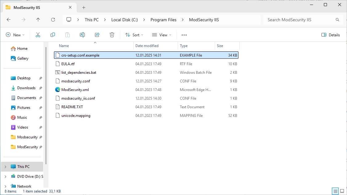 Copy the file to the “ModSecurity IIS” folder.