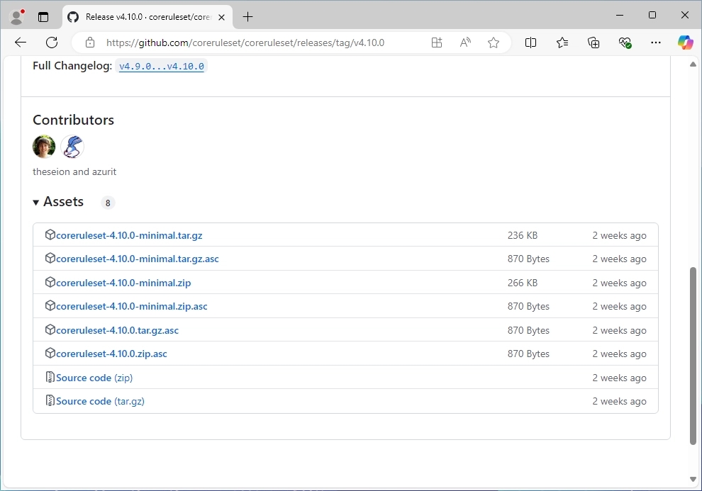 Link: https://github.com/coreruleset/coreruleset/releases/tag/v4.10.0